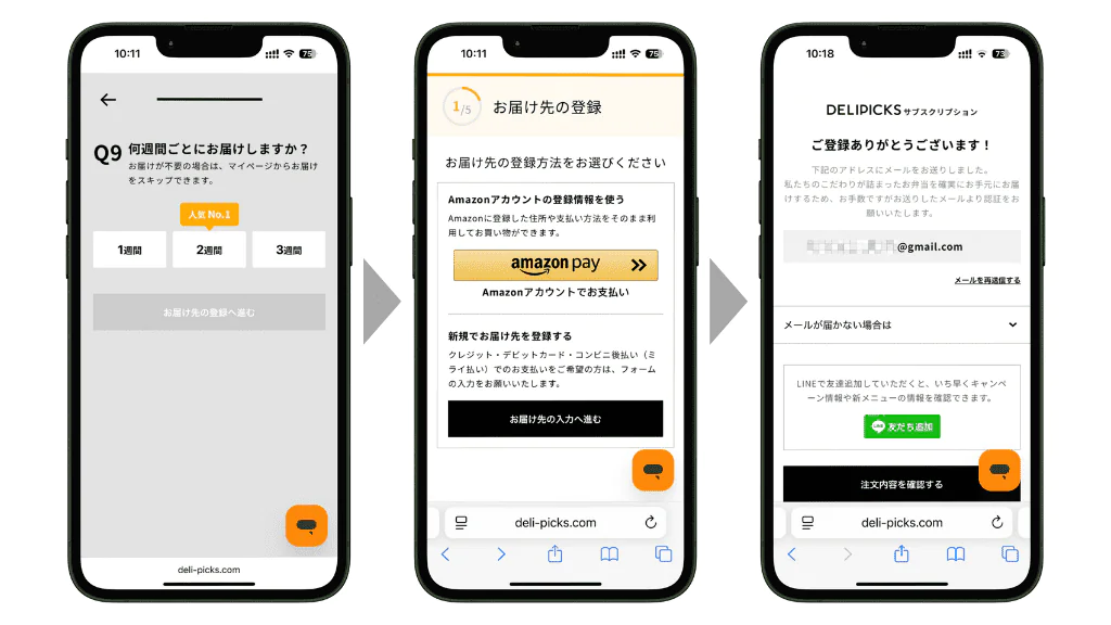 メニューは自動で選ばれますが、後から手動で変更可能です。回答は1分程度で終了し、手間はほとんどかからないため、注文する際はぜひ活用してみてください。
