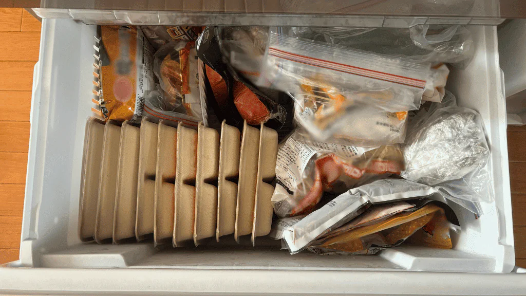 5食のおかずとご飯セットを頼んだ場合、冷凍庫のスペースはこのような感じです。