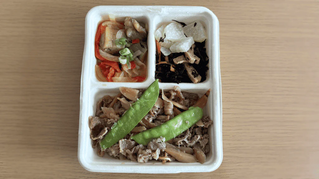 牛肉らしい旨味を感じられる柔らかいお肉です。しっかり甘じょっぱいタレが絡んでいて、ご飯も進みます。一緒に入っていたごぼうもシャキッとした歯ごたえと根菜の旨味を感じられるので、お肉と一緒に食べても負けません。
