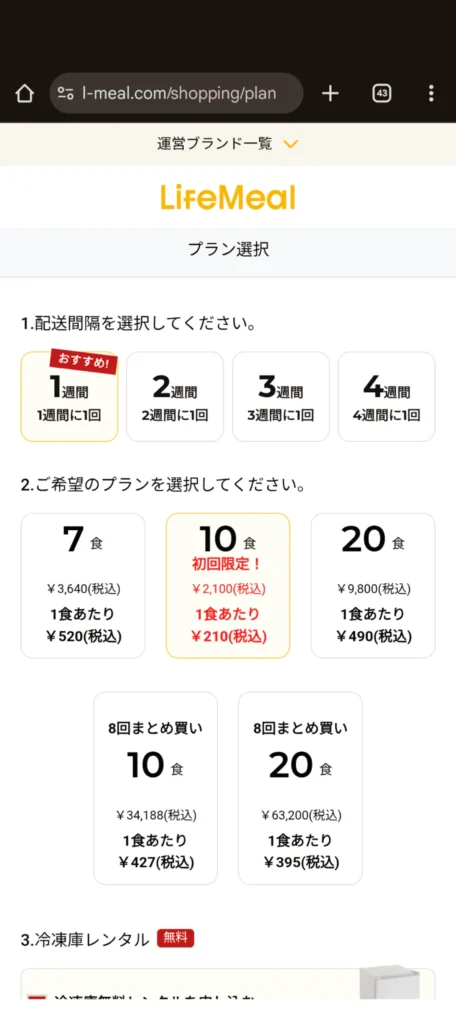 ライフミールは、冷凍庫のレンタルもしています。10食・20食プランを注文した方限定で無料レンタルが可能です。