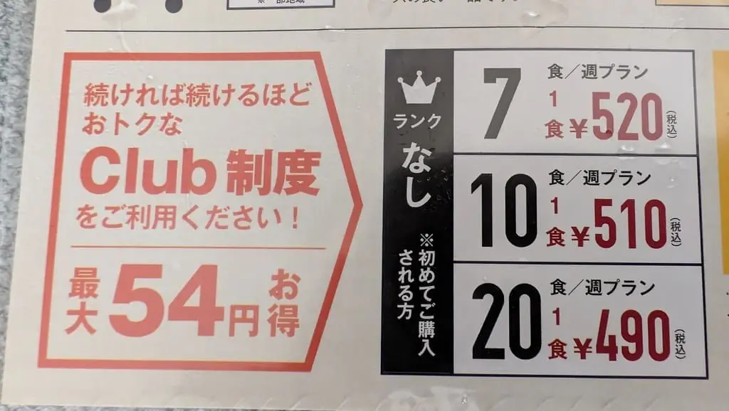 ライフミールではクラブ制度があり、累計購入食数で商品が割引となります。最上位ランクになると、1食あたり54円割引されるため、家計にとって大助かりです。