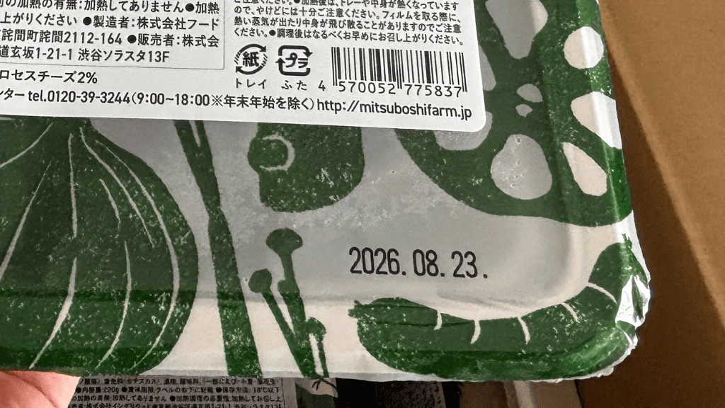 実際に商品が到着したのが2025年11月12日です。届いた商品の賞味期限は、最短で2026年8月23日、最長で2026年10月15日でした。半年以上余裕のある商品がほとんどです。