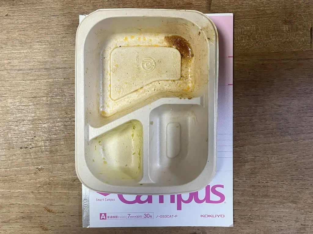 しかし、不思議と物足りなさは感じませんでした。「お腹いっぱい」とまではいきませんが、ダイエット中であれば「これ以上は食べ過ぎだからやめておこう」と考えられるくらいほどです。おかずのほかは玄米のようなつぶつぶが入ったご飯に、カレー風味のおからのような副菜があり、玄米入りご飯を食べるのに咀嚼回数が多かったからかもしれません。