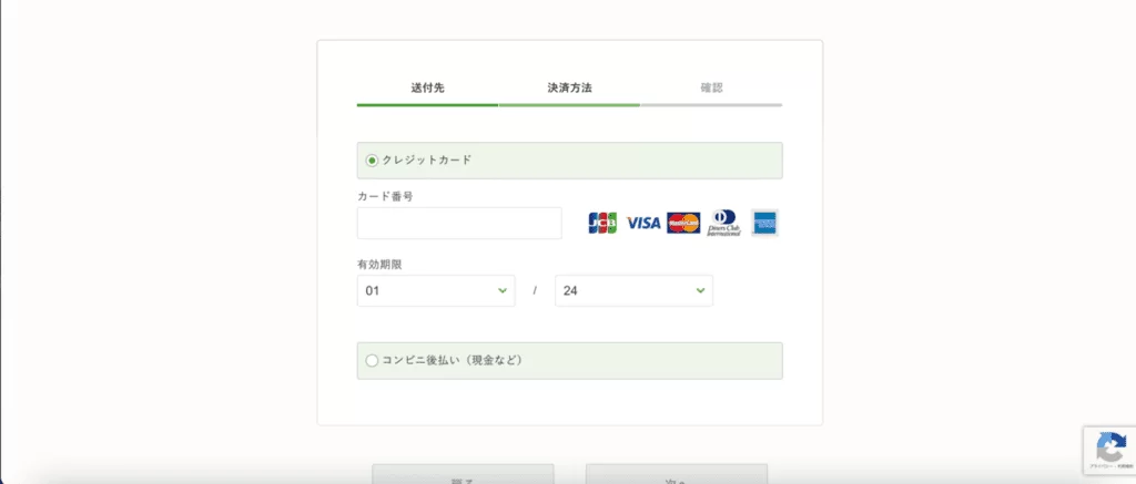 メニューを選び終えたら、名前と住所、決済方法を選びます。
