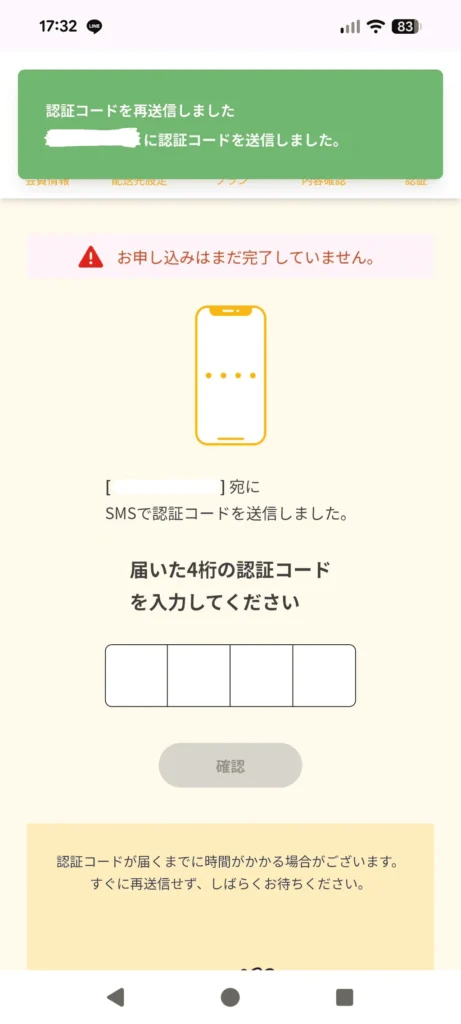 支払いはクレジットカードのみで、料金を確認すると電話番号あてに認証コードが届き、認証が完了すれば注文は終了です。