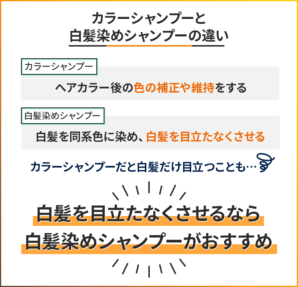 カラーシャンプーは目的によって「白髪染め用」と「おしゃれ染め用」に分けられます。