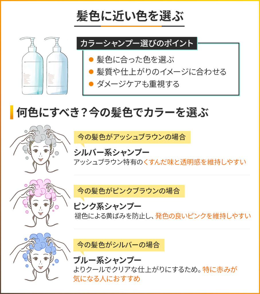 - アッシュ系や寒色系の透明感をキープしたい:シルバーシャンプー