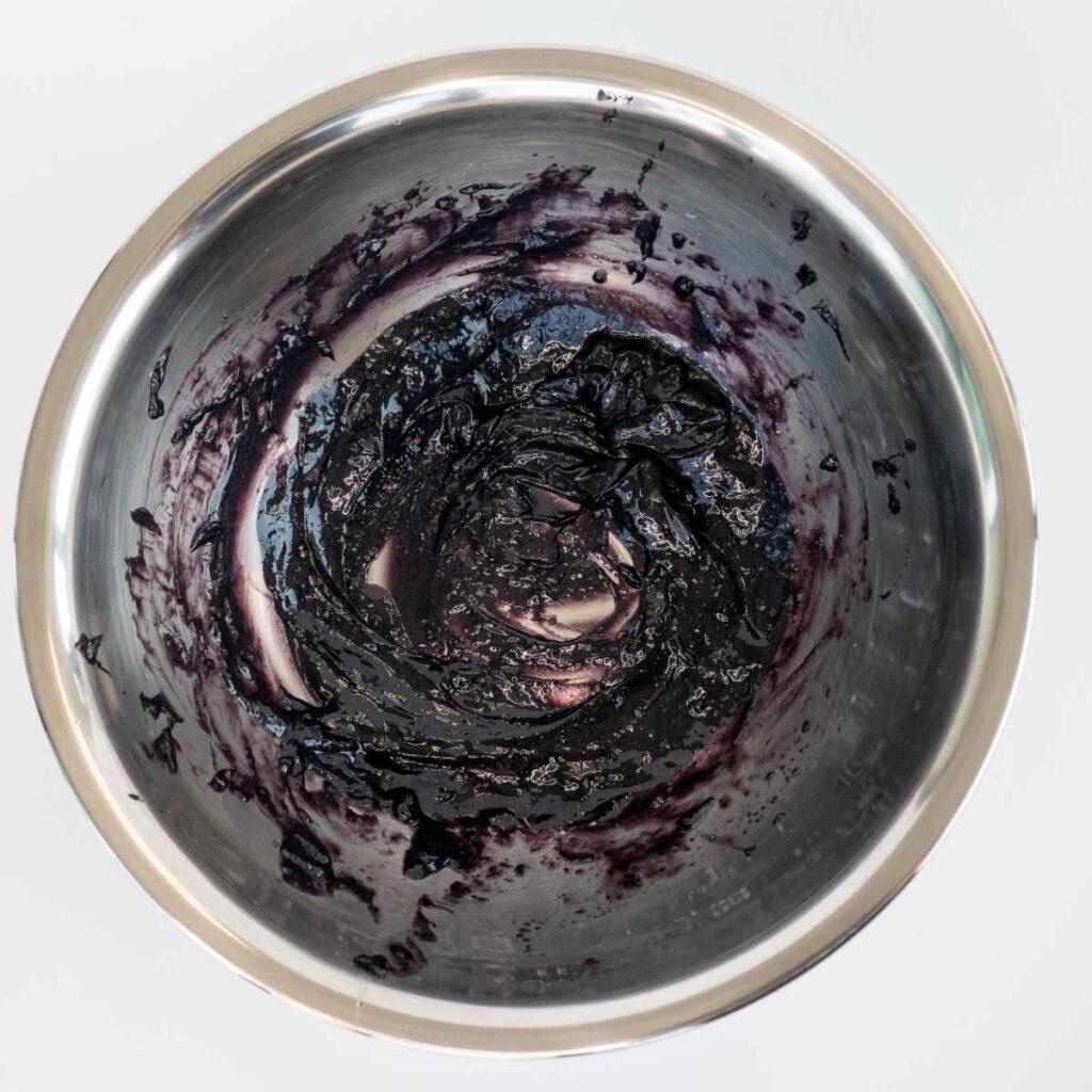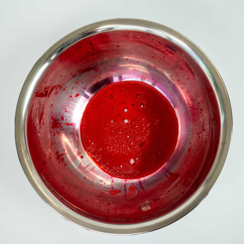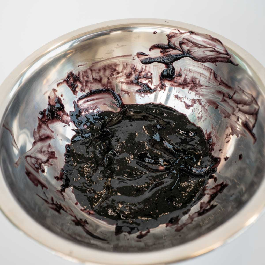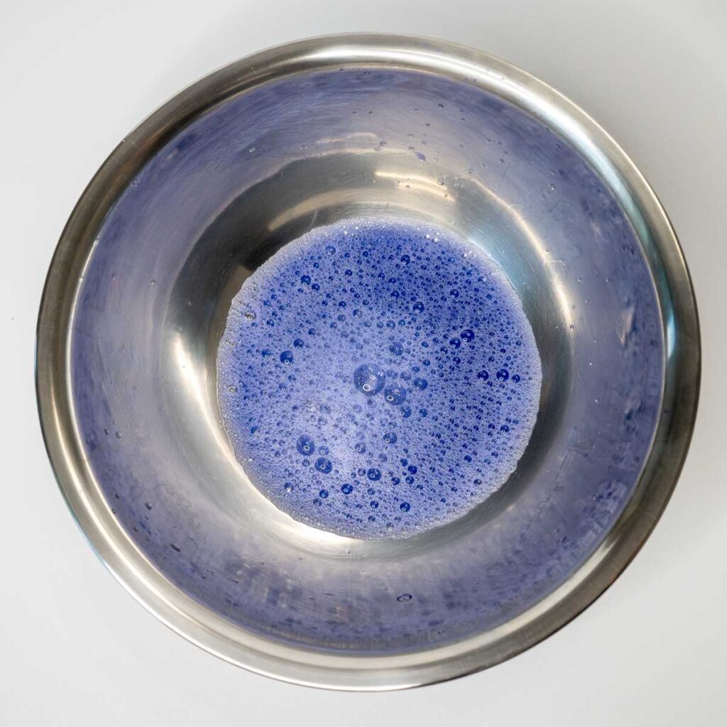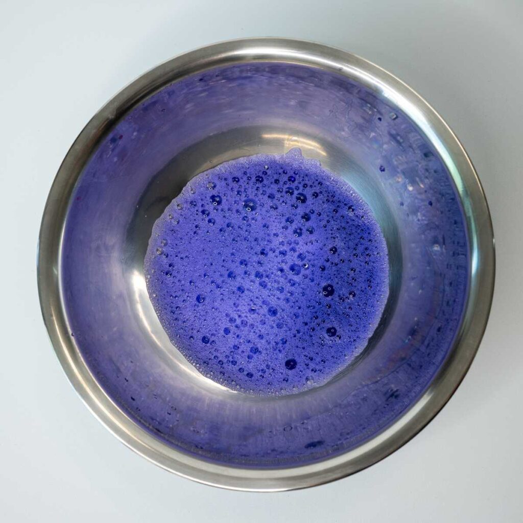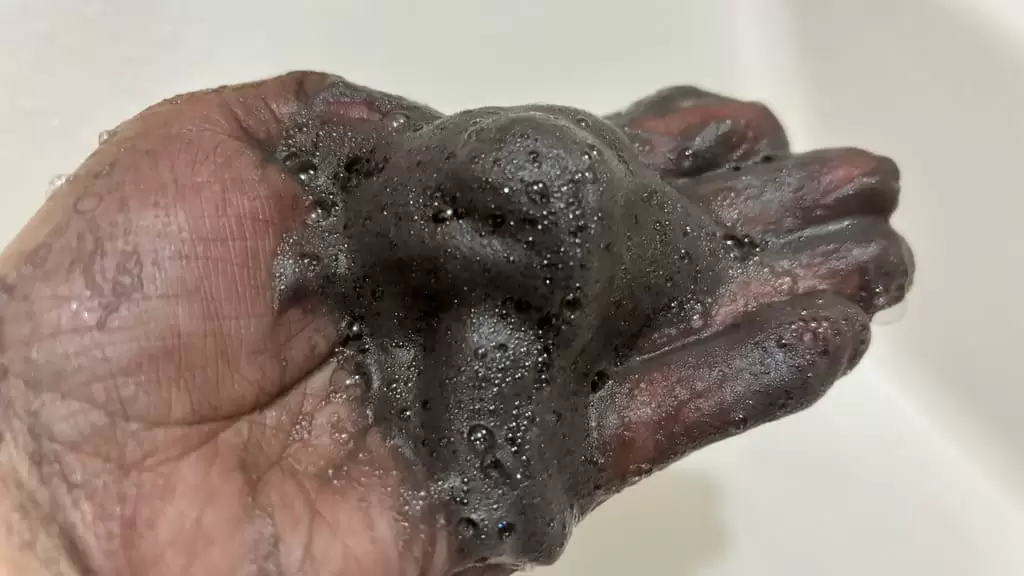 液体は濃厚で発色力の高さが伺えます。使用時は浴室や手に色が残らないよう注意が必要です。