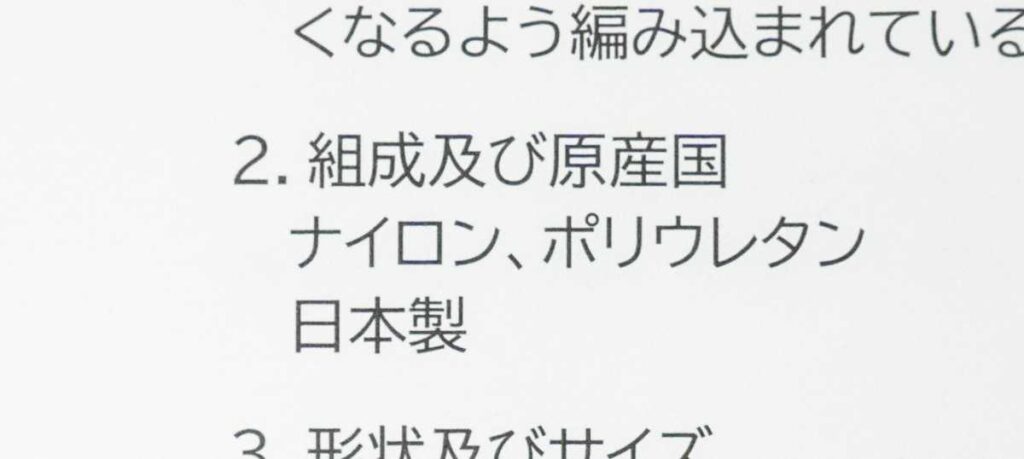 素材 | ナイロン・ポリウレタンなど | ナイロン、再生繊維(リヨセル)、ポリエステル、キュプラ、ポリウレタン | 綿混(分類外繊維 コットンベース) | ナイロン・ポリウレタン | ナイロン・ポリウレタン | ナイロン65%、ポリウレタン30%、コットン5% | ナイロン、再生繊維(リヨセル)、キュプラ、ポリエステル、ポリウレタン | ナイロン、ポリウレタン | レーヨン、シルク | 綿、ポリウレタン、ナイロン(肌側は綿100%) |