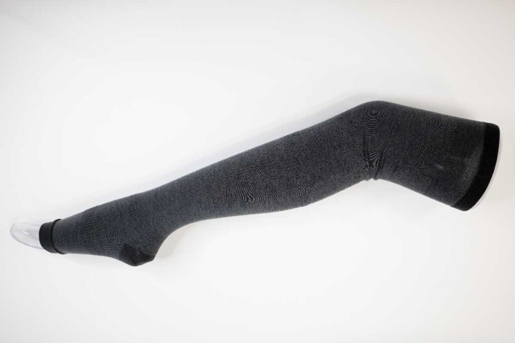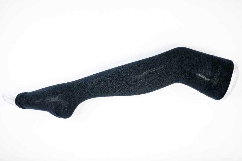 足首からふくらはぎまでをサポート。履きやすく持ち運びもしやすいので、仕事中や外出時など日常使いに向いています。むくみが気になりやすいふくらはぎを集中的にケアしたい人におすすめです。 - 太ももまでのロングタイプ(サイハイ丈)
