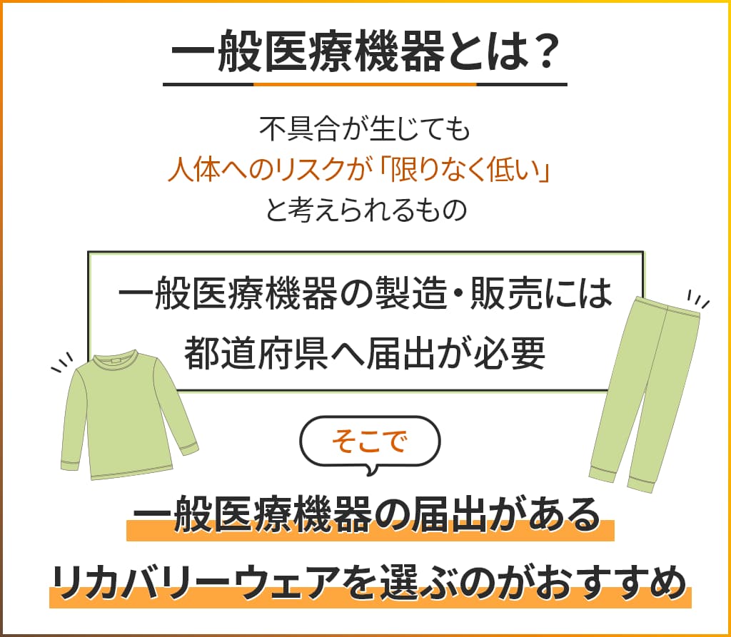 リカバリーウェアの中には「一般医療機器」として届け出が行われている製品もあります。