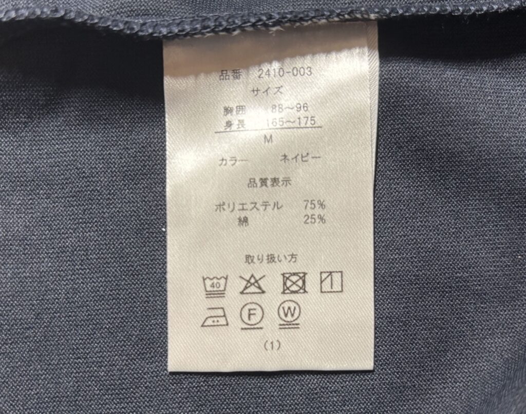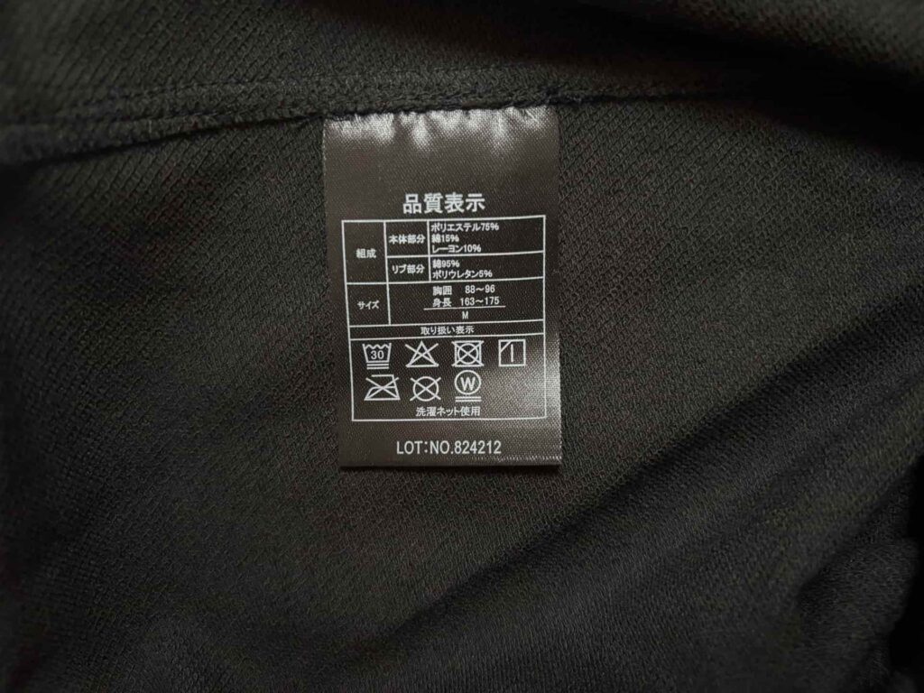 | 素材名 | 本体:ポリエステル75%、綿15%、レーヨン10%/リブ:綿95%、ポリウレタン5% |
