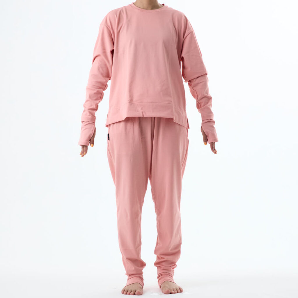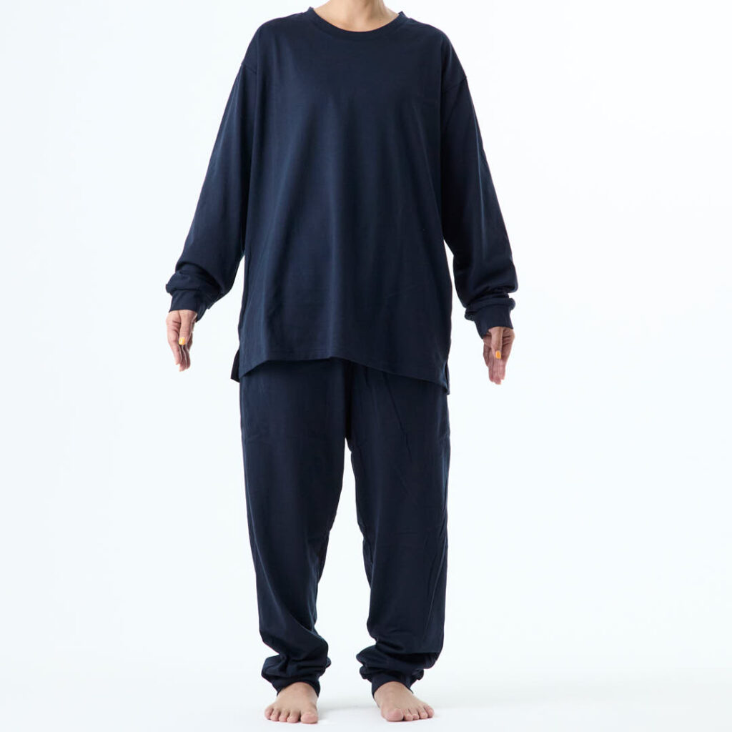 着用時は軽く包まれるようなフィット感で、安らぎを感じる着心地です。寝る前のリラックスタイムやテレワーク時にも最適です。