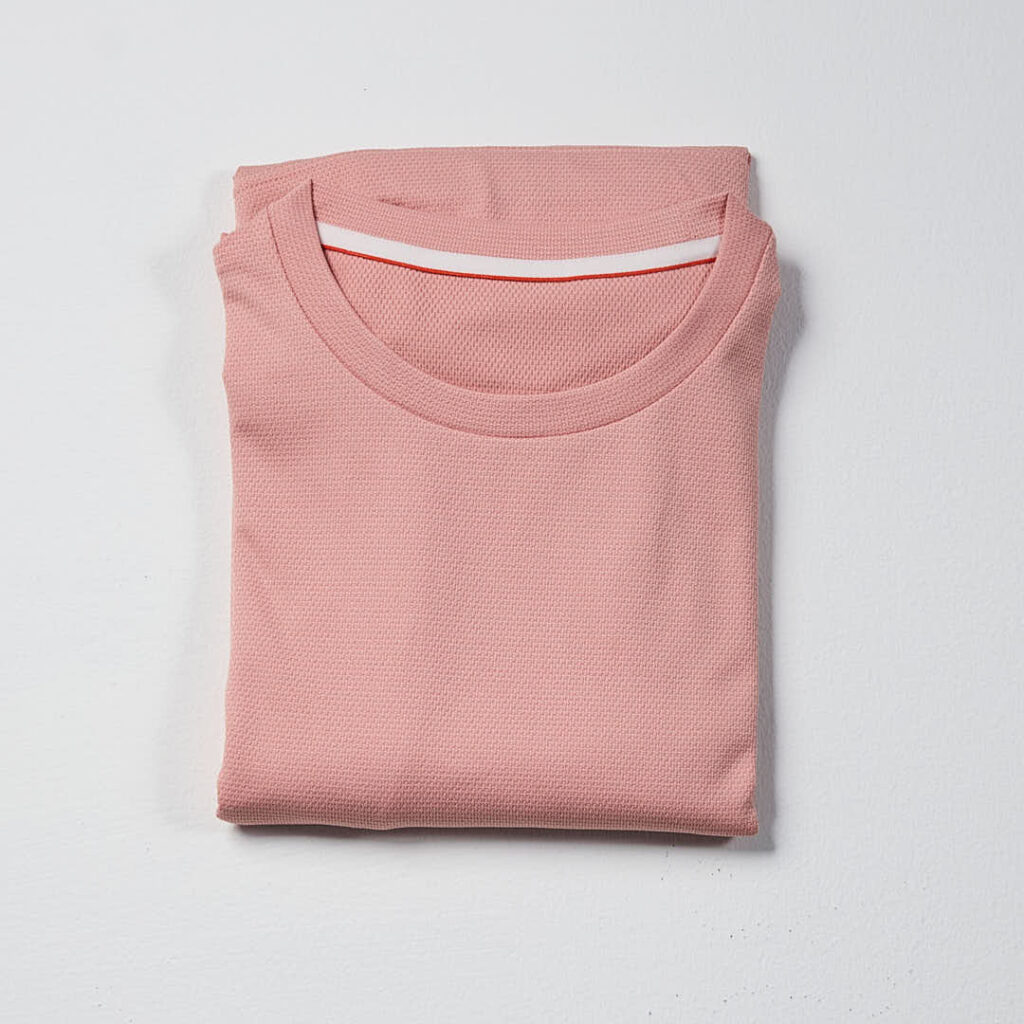 トップスは薄く軽量で、ほどよいフィット感とストレッチ性を兼ね備えたデザインです。体のラインに自然に沿う設計で、動きに合わせてなめらかに伸縮します。