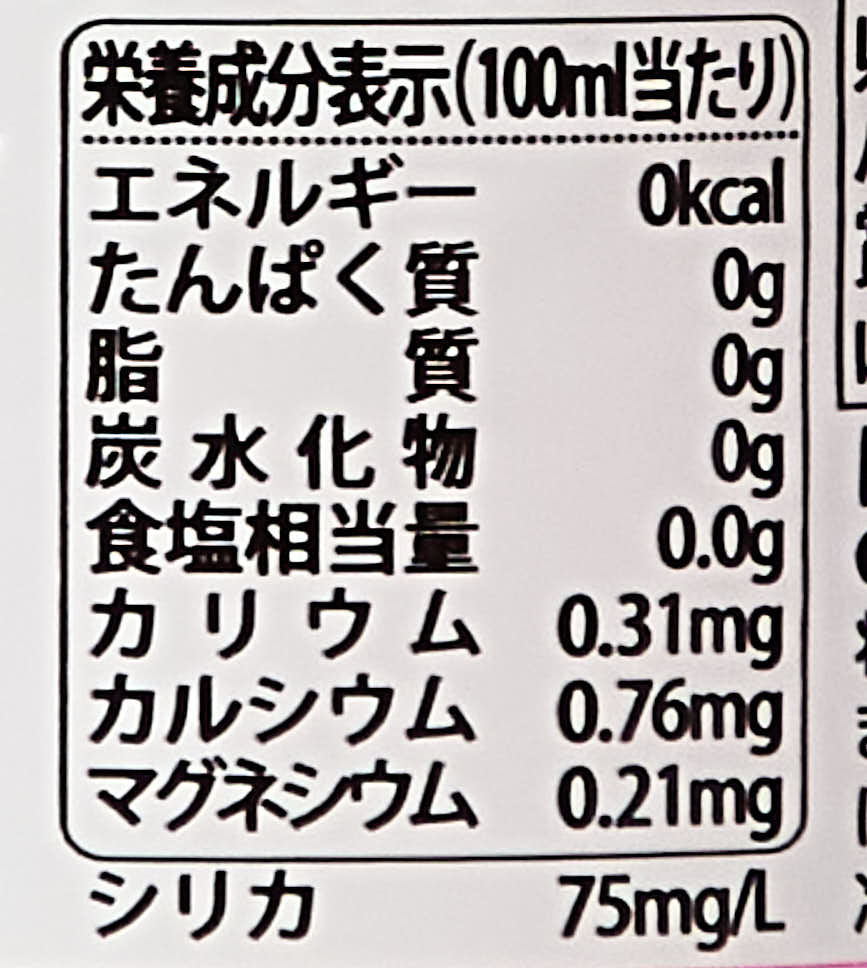 | シリカ含有量 | 93mg/L | 70〜75mg/L | 97mg/L | 50mg/L | 50mg/L | 55mg/L | 97mg/L | 60mg/L | 120mg/L |