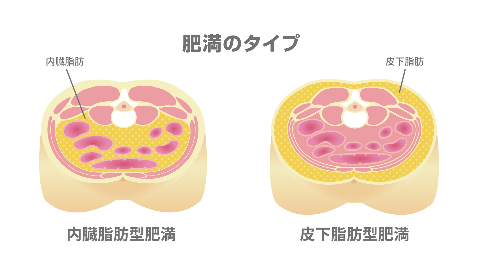 内臓脂肪はおへそを中心とした胴まわりにつきやすく、ぽっこりお腹の主な原因となります。