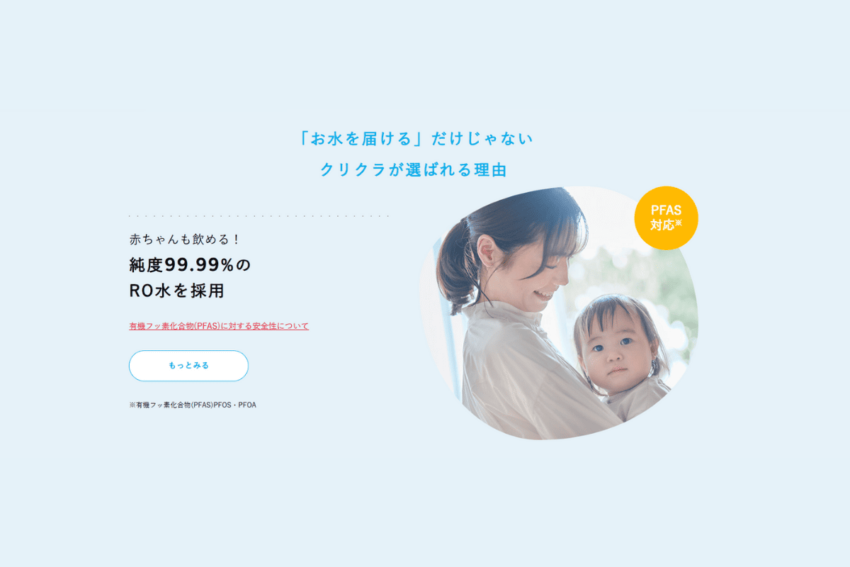 純水提供&2年に1回の専門スタッフによるメンテナンスで、赤ちゃんや家族みんなが安心。