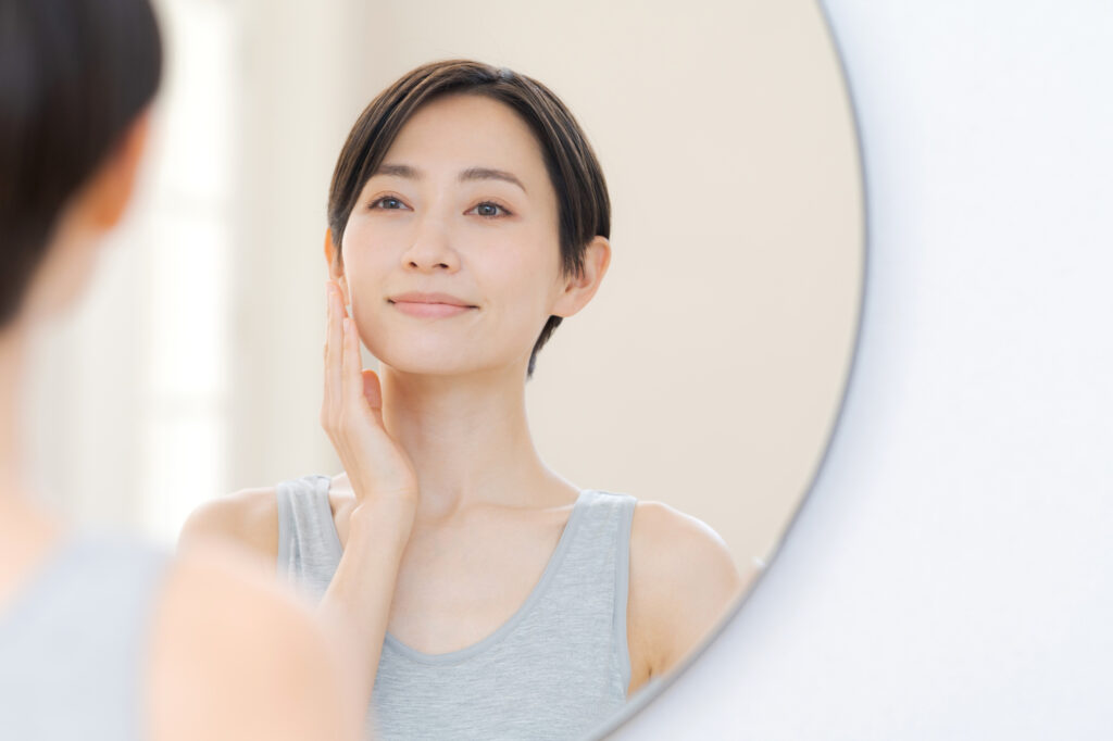 40代でも肌が綺麗な人は、肌につやや透明感があり、キメが細かいのが特徴です。また、肌のトーンが均一で明るい人は、年齢よりも若く見られやすいでしょう。